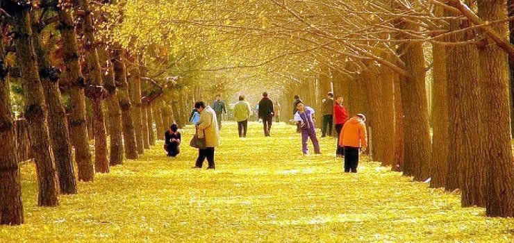 秋季,走进银杏谷,似乎游走在巨幅水墨画卷之中,松桕森森,流水潺潺,鸟鸣嘤嘤。在这里,你满眼看到的都是熠熠生辉的杏叶,勤劳朴实的村人,小桥流水的静雅。即便是落在地上的杏叶也是那么优雅精致。秋风起时,似小扇子般的片片银杏叶,如金蝶般翩翩起舞,时而旋转,时而高飞,最终安静地躺在粗壮的树根旁。踩在铺满金叶的银杏毯上,暖暖的,软软的,柔柔的,立刻让人忘却尘嚣,闭上眼聆听千年古树的生命乐章,感悟田园画卷的古朴娴静,心很快就能与美丽的大自然融合起来,似醉非醉。