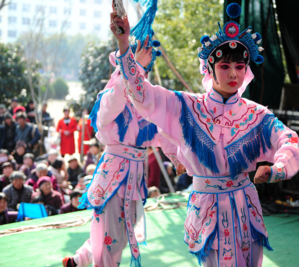 戏台上,演员们唱得有板有眼,唱到精彩处,观众席里掌声和喝彩声一片。