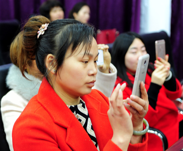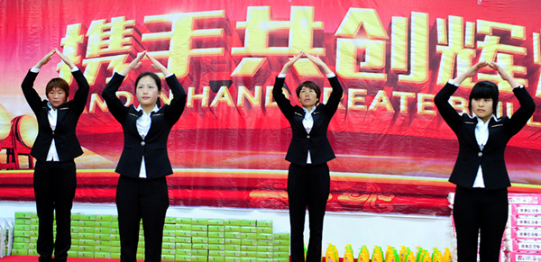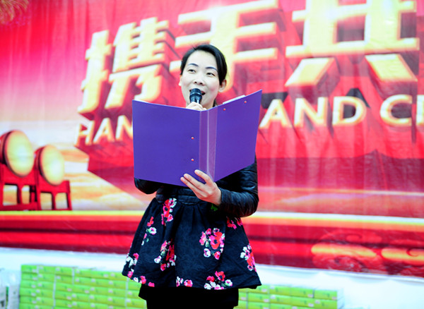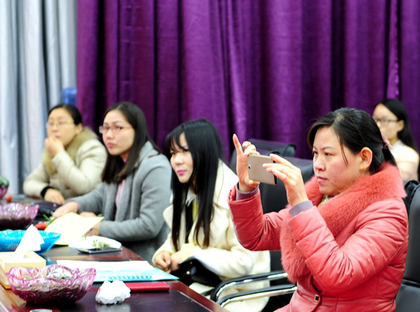在未来生态园里,来自县委宣传部机关的美女们与未来生态园的女员工一道联欢。县委常委、宣传部长薛晖向她们致以节日的亲切问候与温馨祝福。