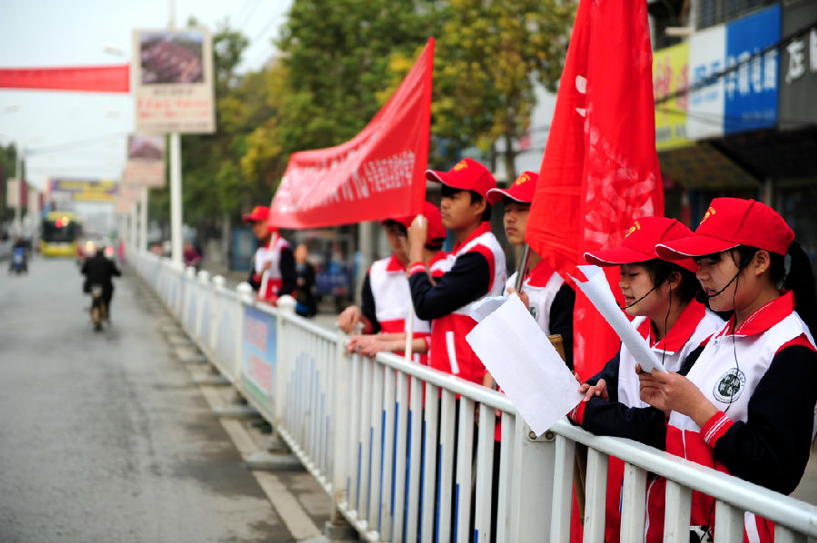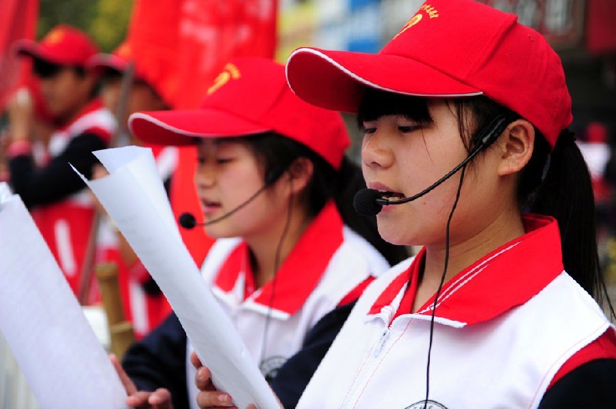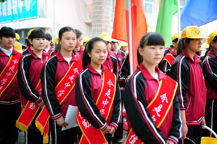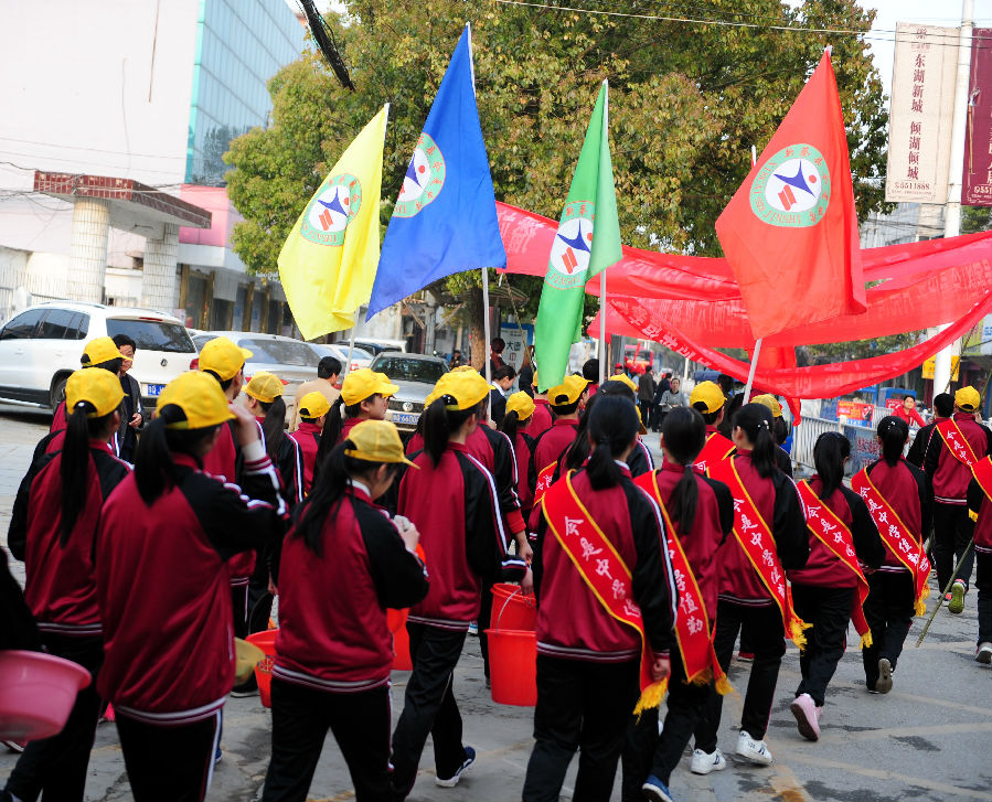 活动现场,一面面红旗迎风招展,一条条横幅鲜艳夺目,与同学们整齐的校服、漂亮的绶带、红润而挂满汗水的脸庞交相辉映。嘹亮振奋的广播宣传声,铿锵悦耳的《学习雷锋好榜样》、《爱的奉献》等歌声此起彼伏,营造出一种活泼热烈、昂扬向上、充满青春气息的浓烈氛围,赢得过往行人的啧啧称赞。
