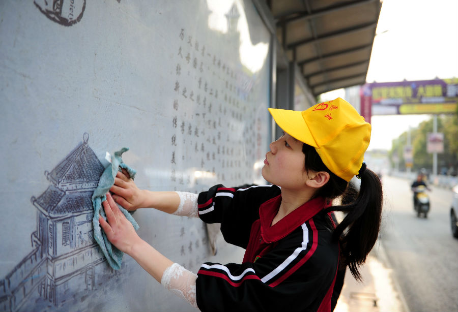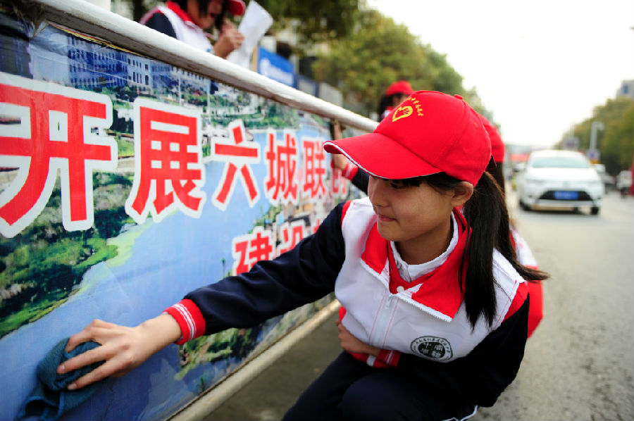 志愿者们拿起扫帚清扫垃圾,挽起袖口擦洗护栏、电线杆、广告牌,以实际行动展示了师生们全力支持“六城联创”、积极参与“六城联创”、人人为“六城联创”做贡献的高昂热情和精神风貌。