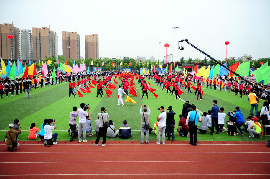 跳动的彩球,挥舞的国旗,灿烂的笑脸、整个开幕式现场成了欢乐的海洋。在雄壮的《运动员进行曲》乐声中,入场仪式拉开帷幕,140个运动员代表团,6527名运动员和251名裁判员在国旗、五环旗和会旗方队的引导下迈着整齐而铿锵的的步伐依次入场。开幕式后,歌舞《相约大美新蔡》、舞蹈《啦啦操》、大型杂技表演《杂技集体造型》、大型武术表演《武林风》和大型舞蹈《中华好儿孙》等热情四溢的文艺节目把现场气氛烘托的十分热烈。本届运动会旨在更好地将职工体育与全民健身结合在一起,深入开展职工体育活动及全民健身运动,营造出全县广大职工科学健身、全民运动的氛围,进一步提高职工集体协作、竞技体育的水平。开幕式结束后,运动员们纷纷走向赛场展开角逐。
