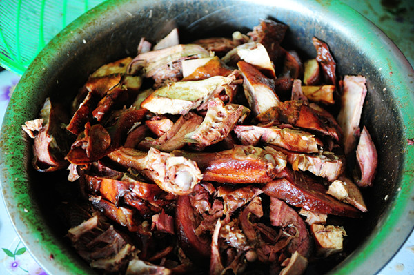 据了解,“蒋老婆”脆皮鸡始创于清朝光绪年,在蒋马氏多年的探索和改进中日臻成熟。脆皮鸡是用隔年的土红公鸡为原料,经过60多道工序煮熟后,再放入20多种中药特制的调味汤,掺入正宗小磨芝麻香油泡制而成,是一道凉食清真菜,鸡皮脆而不筋,鸡肉香而不腻。2003年,蒋洪枝在国家商标局注册了“蒋老婆”商标,“蒋老婆”脆皮鸡越叫越响。